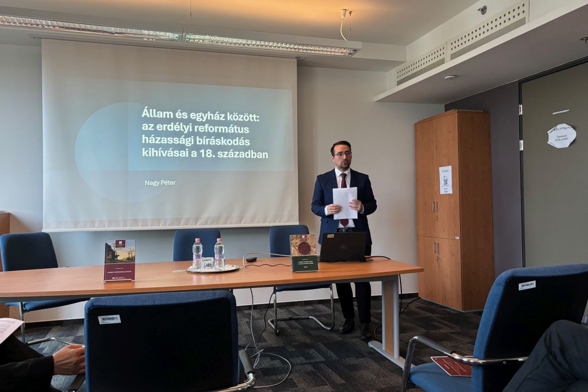 Végezetül Nagy Péter mutatta be Rácz Balázs Viktor doktori disszertációjából készült, Az Erdélyi Fejedelemség zálogjoga című monográfiát, kiemelve a diszciplínák közötti párbeszéd nehézségeit és fontosságát, valamint a szerző által alkalmazott forrásközpontú megközelítés jelentőségét.