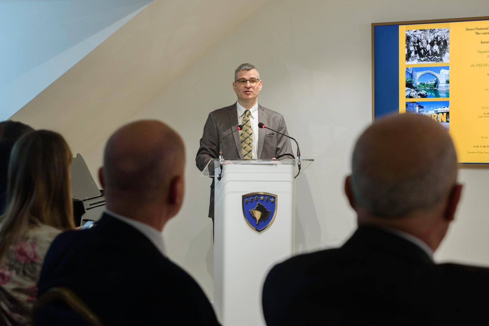 A projekt kutatója, Márkusz László előadása pedig a nemzetközi közösség célkitűzéseit vizsgálta a boszniai és koszovói államépítési kísérletek során. Három stratégiai célt emelt ki: (1) a regionális béke és stabilitás megteremtését, (2) a nyugati mintájú liberális demokrácia meghonosítását, valamint (3) a tartós politikai rendezés elérését az etnikai kvóták és kollektív jogok alkotmányos eszközeinek alkalmazásával. A béketeremtés és államépítés folyamata során azonban nem kapott kellő figyelmet a nemzetépítés, vagyis egy belső kohézióval rendelkező politikai közösség kialakítása. Nyitott kérdés marad, hogy közös identitáspolitika hiányában mennyire bizonyul tartósnak a boszniai és a koszovói rendezés.