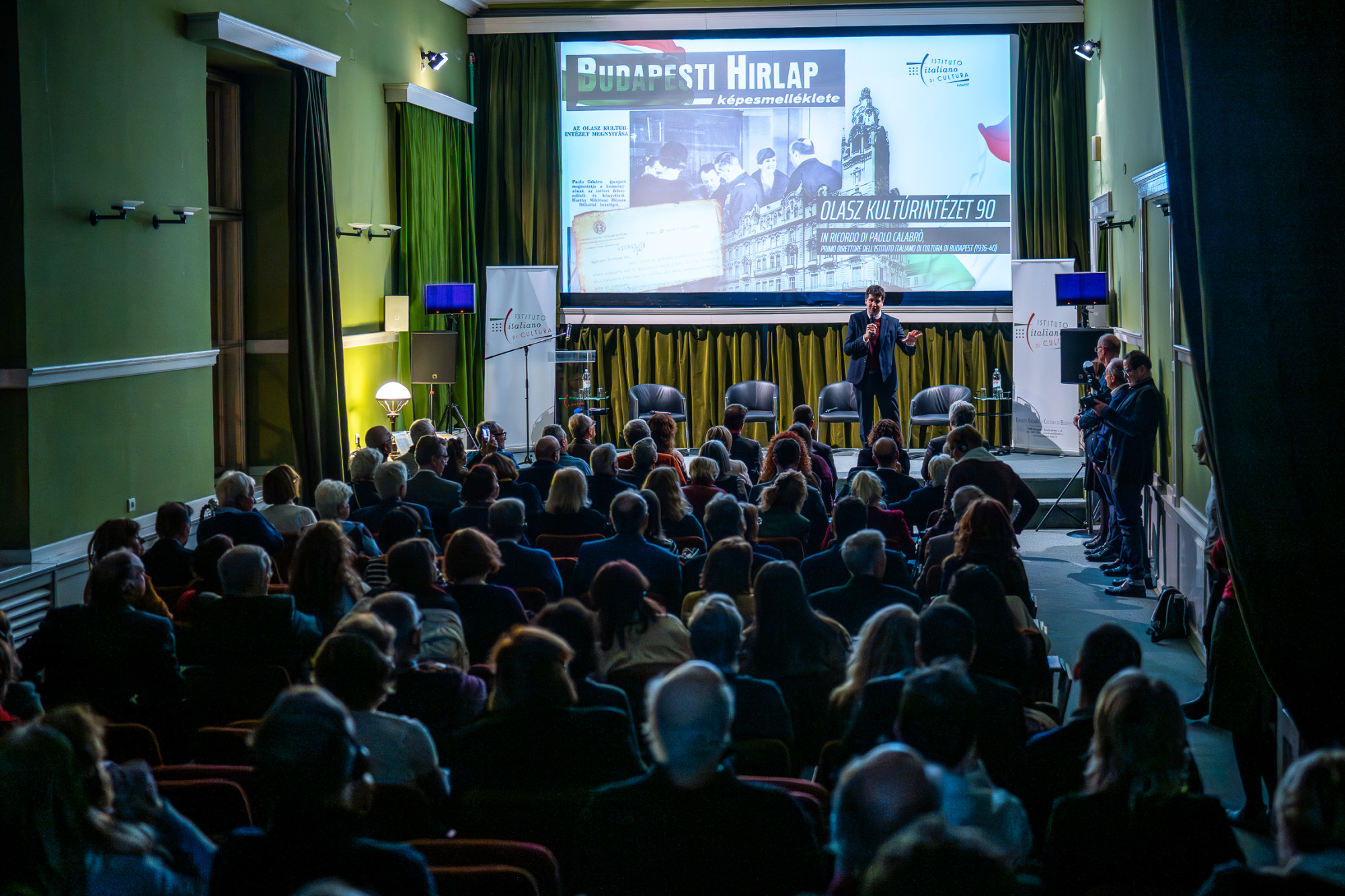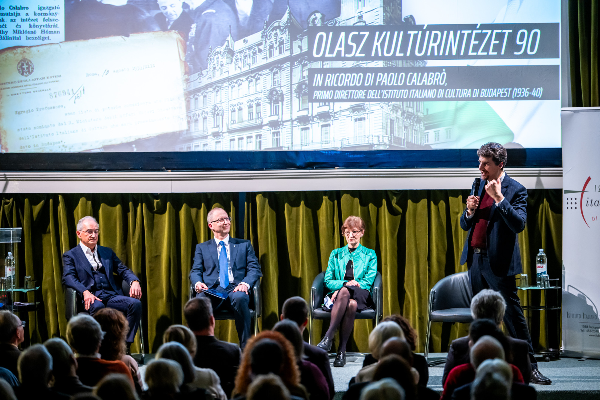 A jubileumi esten Avv. Paolo Emilio Russo, az intézet első igazgatója, Paolo Calabrò unokája, valamint Ordasi Zsuzsanna, a Károli Gáspár Református Egyetem művészettörténésze is felszólalt. A történeti kereteket és a két világháború közötti összefüggéseket Molnár Antal ismertette.