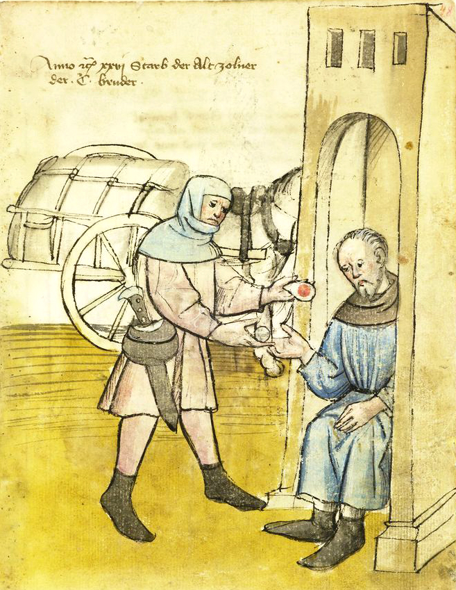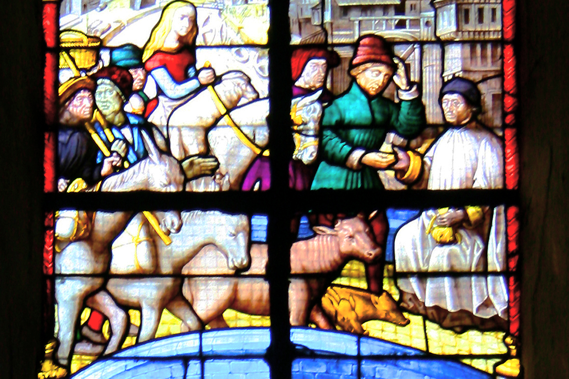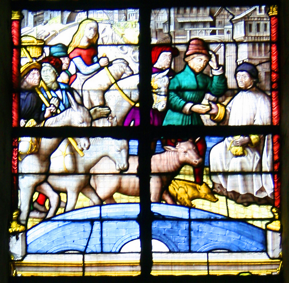 Bevezető képünkön: Hídvám fizetése. Jelenet a tournai-i Notre Dame-katedrális üvegablakán (Wikimedia Commons / Jean-Pol Grandmont)