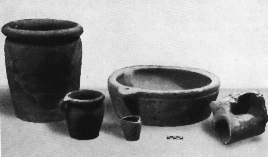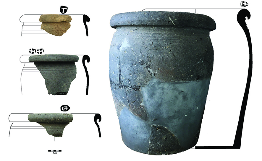 A leggyakoribb edénytípus a fazék volt, amely a késő középkorban, a 15–16. században már jellegzetes formavilággal rendelkezett. Ebben az időben a grafitos fazekak megjelenése viszonylag robosztus, peremük kihajló, vastag és magas. Válluk minden esetben csapott. Az edény legnagyobb átmérője alatta, a test felső harmadánál figyelhető meg, és alig nagyobb a peremátmérőnél. A díszítések nem túl változatosak, és minden esetben kizárólag a vállra koncentrálódnak: egy-kettő horony vagy 2–3 élborda figyelhető meg rajtuk. Az edények alja alig szűkül össze, a darabok mind korongon készültek. A grafit többnyire különböző arányban, apró szemcsék formájában jelenik meg bennük, de előfordulnak nagyobb grafitdarabokat tartalmazó példányok is. Az edények anyagában más összetevők is gyakoriak. Sok töredékben mészdarabok vannak, amelyek olykor a kerámia felületének mállását is okozzák. Gyakori az apró kavics és a zúzott kő jelenléte is.