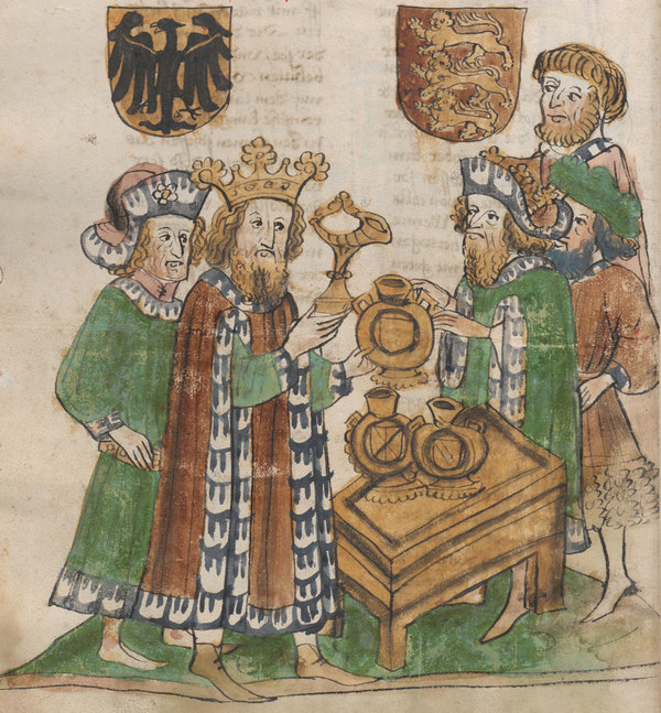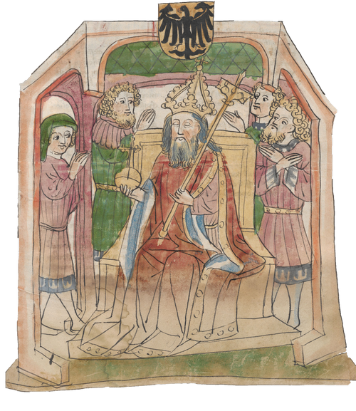 Kezdőképünkön: A trónján ülő, halott Zsigmond király Eberhard Windecke kéziratában, 1445–1450 körül (Österreichische Nationalbibliothek, Wien)