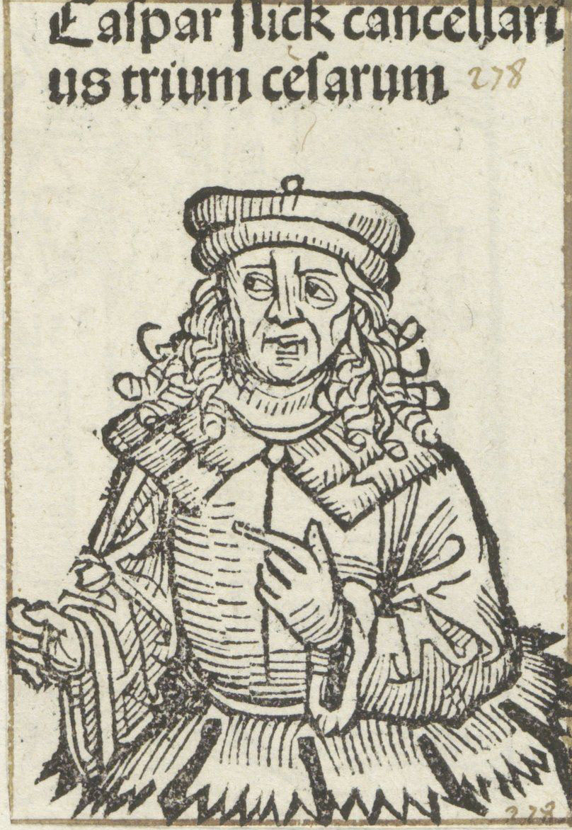 kezdi Zsigmond magyar és cseh királynál (1387/1419–1437), valamint német-római császárnál (1433–1437) tett utolsó látogatásáról szóló beszámolóját Kaspar Schlick birodalmi kancellár, majd így folytatja az uralkodó szavait –„Az egész királyságot lányomra és fiamra kívánom hagyni, az országom uralmát és kormányzását ők vegyék át, figyelembe véve az aranybulla szerinti törvényes öröklési rendet, amely világosan kimondja, hogy a leányok ugyanúgy örökölnek, mint a fiúk, és miként a nagyapám, János király is leányutód révén jutott ehhez a királysághoz sok más elődjéhez hasonlóan, akként én is leányutód révén jutottam Magyarországhoz, nem hagyva továbbá figyelmen kívül a cseh és osztrák tartományok és fejedelmek egymással kötött, dicsőséges szerződéseit sem.” Az egeri (chebi) származású főkancellár, valamint szász kísérője, Hartung von Klux lovag, Zsigmond király sokat látott diplomatája, az uralkodó halála előtt hozzávetőleg két nappal, 1437. december 7-én, a morvaországi Znaimban lezajlott eseményen azt is hallhatták,amint a haldokló király méltatva egyszülött lánya, Luxemburgi Erzsébet kegyességét, becsületességét, feddhetetlen életvitelét, felemlegetve a hosszú ideje fiának tekintett veje, Habsburg Albert törvénytiszteletét, igazságosságát, erényeit, illetőleg jó szomszédságát végakaratát így zárta: „A Magyar Királyságot is nekik adtam, amit majd az Úr segedelmével át is fognak venni.”